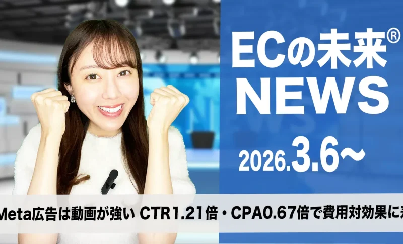 LINEヤフーは「Yahoo!ショッピング」の出店店舗を表彰する「Best Store Awards 2025」を開催し、2025年の取扱高が前年比108%になったと発表しました。成長の背景には、PayPayポイントを軸にした販促強化に加え、昨年6月に始めた大型販促「爆買WEEK」の定期開催、ポイント消化と相性が良いタイムセールの訴求、レビュー施策や配送情報の透明化など、集客から購買、安心感までを一体で磨いてきた流れがあります。2026年度は月間利用者数1億人のLINEとの連携を本格化し、潜在層への提案型導線を強化する方針です。加えて、生成AIを活用した「Yahoo!ショッピングAIエージェント」や、出店者向けの「Yahoo! EC Pilot」も展開予定とされました。単なるモール集客策ではなく、外部接点の拡大と運営支援の高度化を同時に進める構図であり、店舗さまにとってはLINE導線、レビュー対応、販促設計を含めた総合的な売場運営がこれまで以上に重要になりそうです。2.Meta広告は動画が強い CTR1.21倍・CPA0.67倍で費用対効果に差